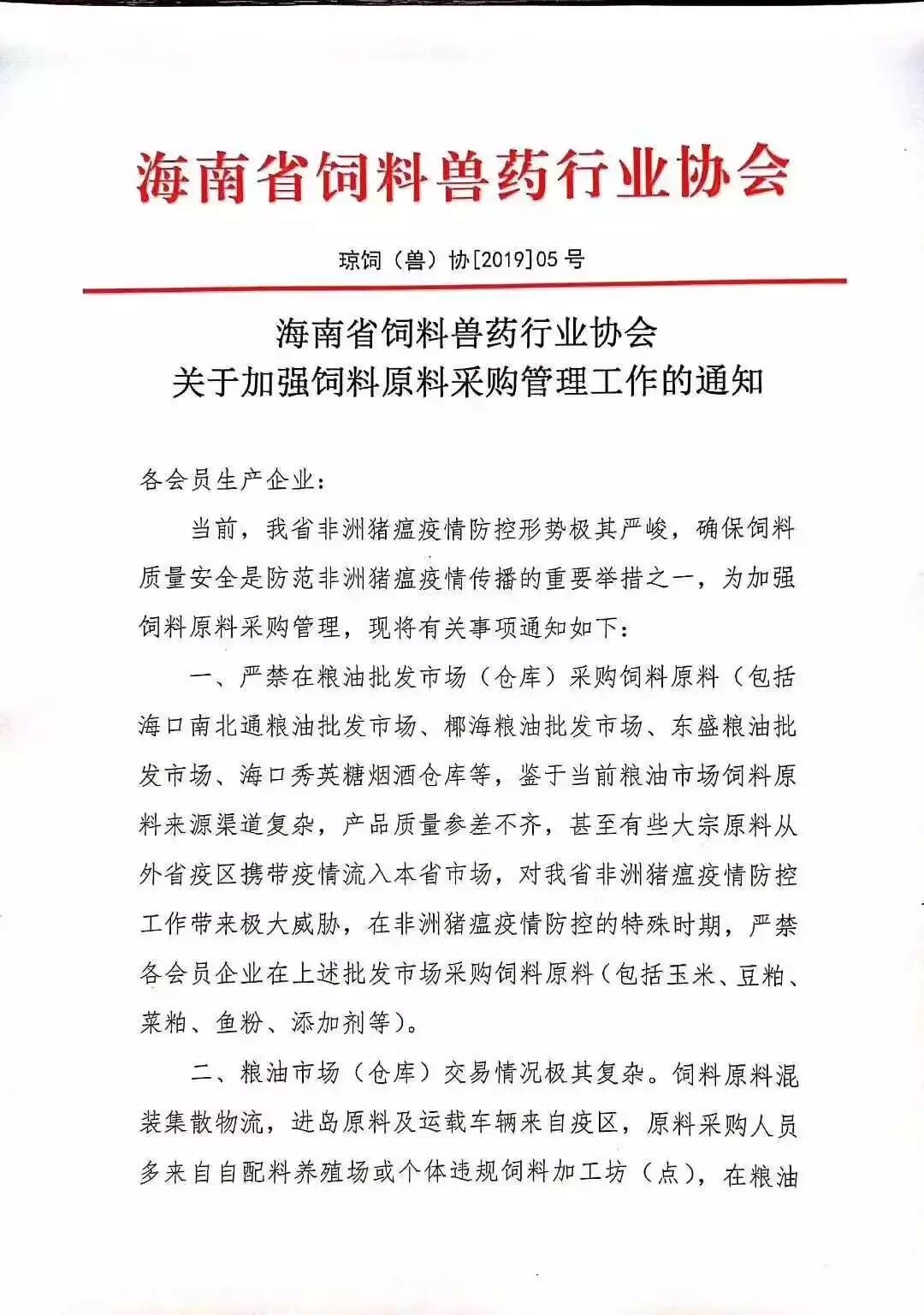 5月5日,海南省饲料兽药行业协会发布了关于饲料原料采购管理的通知,对于自配料的管控力度进一步加大。